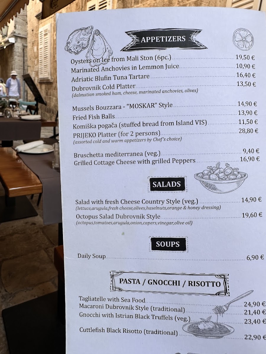 Whether pairing a glass of local wine with Truffle Gnocchi or enjoying a calm meal away from the bustling Old Town streets, the food here offers a grounded sense of place and tradition. Simple seafood preparations and hearty meat dishes alike complement the quiet charm of the small, welcoming space.