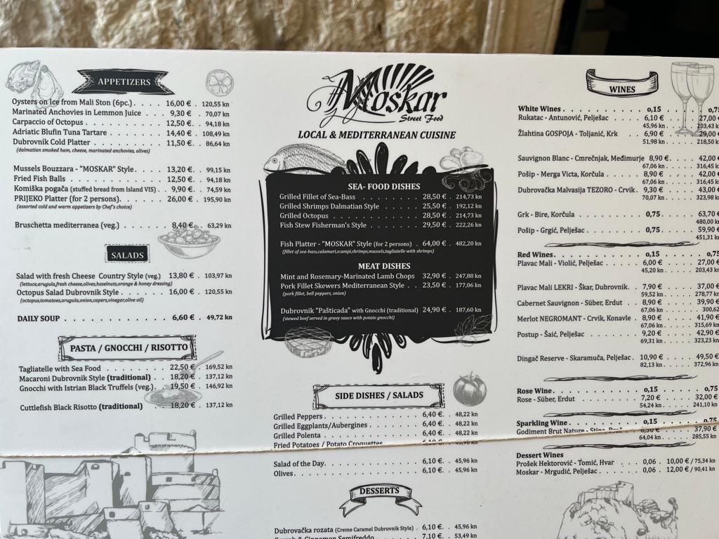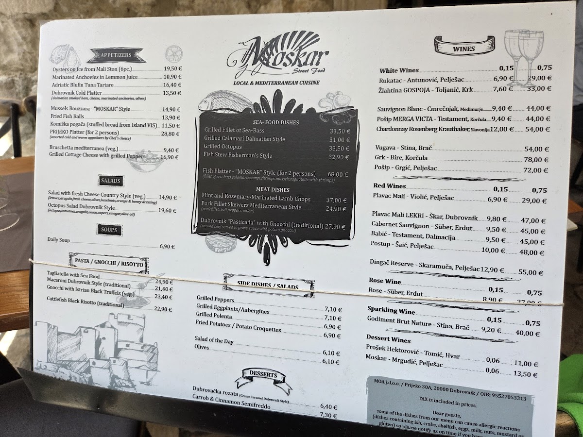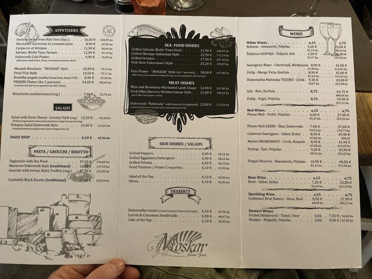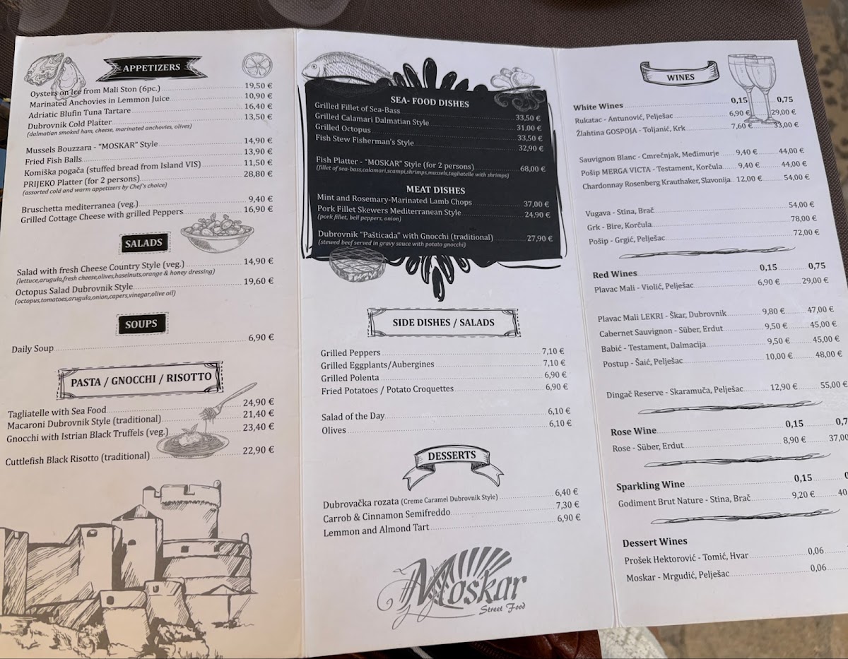 The menu at MOSKAR Street Food offers a warmly casual yet refined glimpse into traditional Dalmatian and broader Croatian coastal flavors. It features dishes that are thoughtfully simple, focused on fresh, local ingredients and classic preparations that feel both comforting and satisfying.